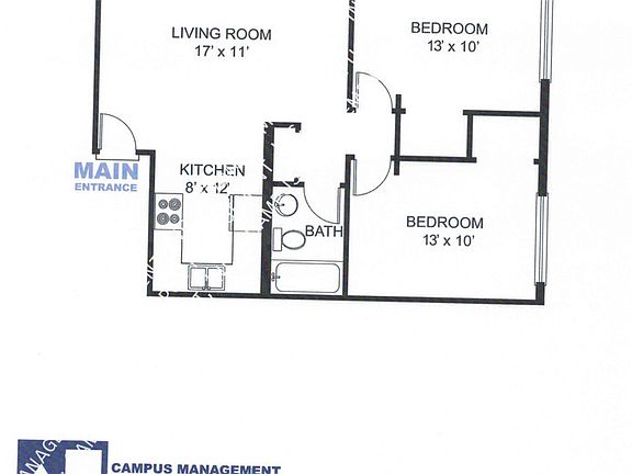 Located one block from the CCRB, this is a great central campus area! These two bedroom apartments could easily accommodate 2-4 people. There is a large living room and the kitchen has a microwave and garbage disposal. Two parking spaces and A/C are an added bonus!