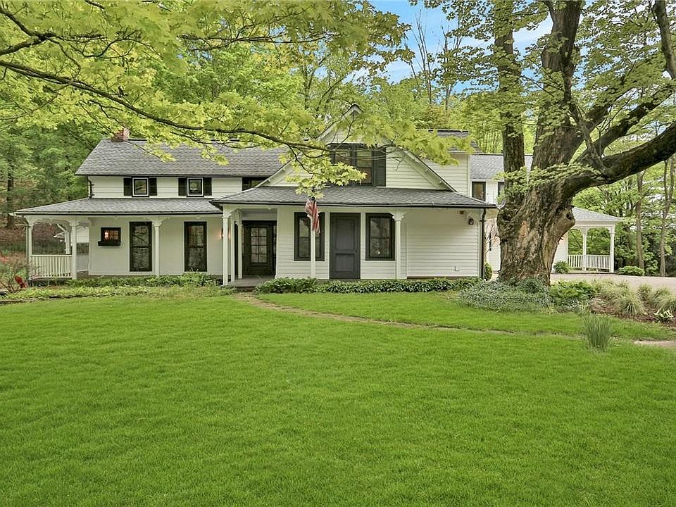 Welcome to your private oasis! This charming old style farmhouse is nestled on a lush 2-acre property, offering a peaceful and secluded setting. The mature plantings surrounding the home create a picture-perfect atmosphere. The patio and wrap-around deck, are ideal for outdoor entertaining or simply enjoying the tranquility of nature. Upon entering the main house, you'll be captivated by the unique blend of classic charm and modern updates. The beautifully designed and updated kitchen features cherry cabinets, granite countertops, and a breakfast nook that opens up to a gorgeous family room with built-in cabinets and one of three fireplaces creating a cozy ambiance throughout. The spacious formal dining room and living room are perfect for hosting gatherings with friends and family. The primary bedroom is a true retreat, with two walk-in custom closets and an ensuite bath for your convenience and privacy. In addition to the primary bedroom, there are four additional bedrooms, providing ample space for everyone. This exceptional home offers tons of light throughout and is filled with closets to meet all your storage needs. Its convenient location makes it close to all amenities, while still being tucked away on this stunning property. There's more...This property features a detached 2-car garage, providing ample space for your vehicles. Additionally, there is a studio with a full bath, offering endless possibilities for a guest suite, home office, or art studio. Don't miss the opportunity to own this charming farmhouse that seamlessly blends old-world charm with today's modern amenities. Additional Information: HeatingFuel:Oil Above Ground,ParkingFeatures:2 Car Detached,