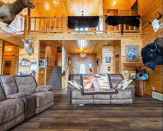 Montana Perfection. High end well maintained Rare & Truly Beautiful 2 level elegant home. 3 Bdrms, 2.5 Bath, 80 gorgeous acres(45 usable balance in Pine covered/Rimmed hills)seasonal Keyser Creek. Driveway off paved county road. Mountain Views. Home w/TruLog metal siding, Trek deck, 4 car tandem garage. 12 gpm well. Knotty Pine walls, Cathedral Ceilings, Loft, gas fireplace. Mst En-Suite w/tiled bath&separate Tub/Shower, walk-in closet, direct access to deck, Kitchen w/breakfast island, 2018 stainless appliances. Surround sound. Approx. borders in pictures marked in red. Subject to Seller buying replacement property