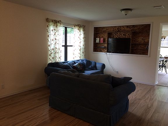 Roomy 4 bed/2.5 open floor plan with plenty of flex space on large cul-de-sac lot! Laminate wood flooring in living, formal dining, den, and bedrooms. No carpet! Den can be used as 5th bedroom, media, play, or study. Tiled kitchen and breakfast area open to family room with center island. Lots of counter and cabinet space! Master suite features a walk-in closet and full bath with extended vanity. Easy access to IH35. Amazing community amenities - clubhouse, pool, park, and sports court.