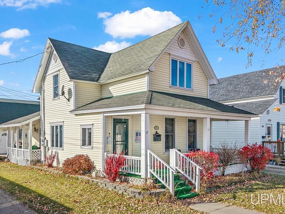 Grandma’s house is officially for sale! This cherished family home—where the sellers spent their childhood—offers wonderful space, character, and charm. The main floor features an eat-in kitchen, full bath, laundry room, dining/family room, office, and a large living room perfect for gathering. Upstairs you’ll find three nicely sized bedrooms and a second bathroom with a jetted tub. The home includes a spacious detached garage with a finished upper level, plus both a welcoming front porch and a cozy side porch for relaxing outdoors. Located just one block from Gladstone Park, this home also offers original hardwood floors and beautiful woodwork, with the possibility of additional hardwood beneath the carpeting. A truly unique home filled with potential and timeless appeal!