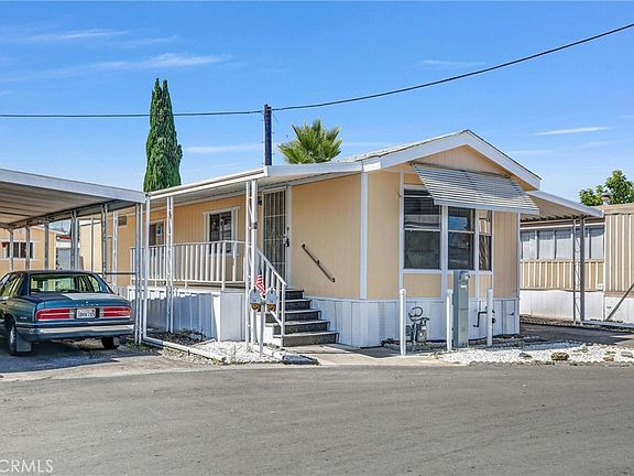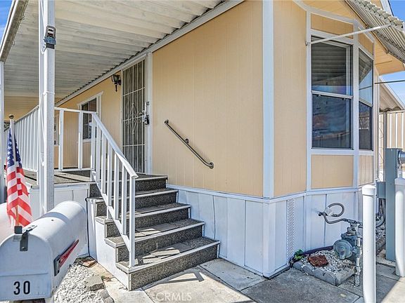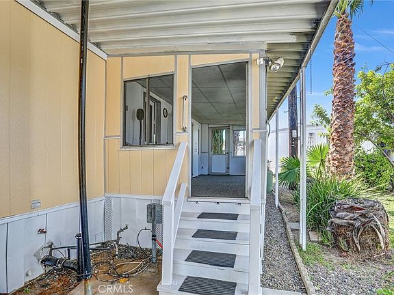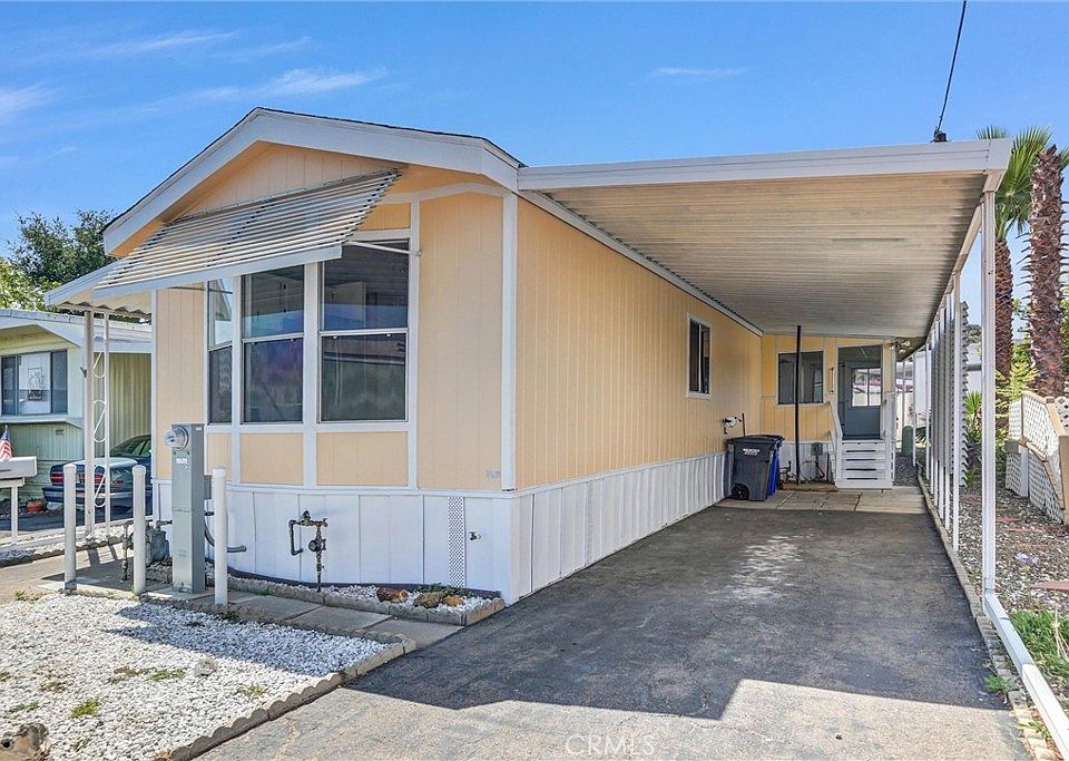 This unit has 2 bedrooms and 1 bath plus a large enclosed sun room patio space for all your storage needs! Both the interior and exterior of the unit have been freshly painted and exterior steps and patio have been newly carpeted. The kitchen and living area have vaulted ceilings and there are plenty of windows that provide natural light. The covered carport leads you to a second entry way that allows you to enter the home from the back enclosed patio that has brand new carpet and two built in storage areas. There is also an oversized shed in the back easily accessible by stone paper walkway. The park is a 55+ community that has has a clubhouse and pool with regularly scheduled activities for residents.