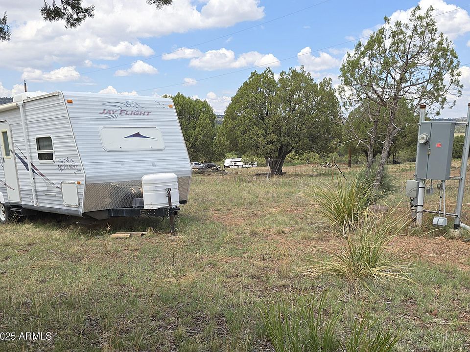 KING OF THE HILL OPPORTUNITY!! 2.12 ACRES READY FOR BUILDING! or WEEKEND GETAWAYS!! Directly adjoins Tonto National Forest! Camp out in the 2006 travel trailer that's included. 200-amp underground APS electric service to a pedestal with 30-amp RV receptacle. High speed fiber optic Internet service. Septic system sized for a 3 bdrm structure. Shared well with equipment and pipe run to freeze-proof hydrants on the property! Amazing panoramic views!! Adjoining three ACRE LOTS also available.