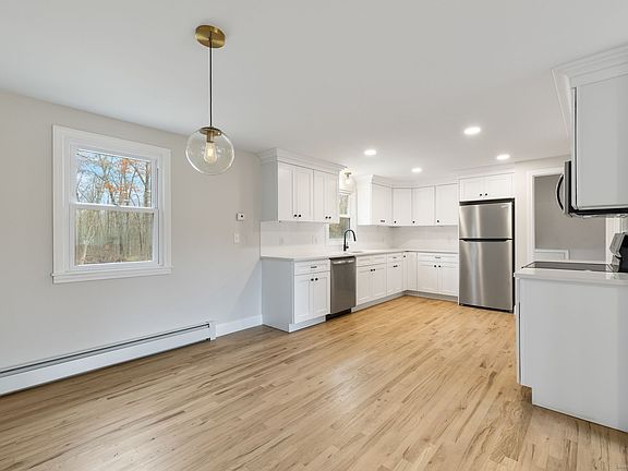 Welcome to this beautifully updated split-level home in the heart of Suffield! Enjoy refinished hardwood floors throughout the main and upper levels, adding warmth and charm to every room. The main level features a bright, spacious living room perfect for gathering, along with a beautifully renovated kitchen complete with white shaker cabinets, quartz countertops, and a stainless steel appliance package-an ideal setup for everyday living or entertaining. Upstairs, you'll find three generous bedrooms, including a lovely primary suite, as well as an additional full bathroom enhanced with modern fixtures and finishes. The lower level offers a comfortable family room, perfect for relaxing, hosting movie nights, or creating a versatile bonus space. Additional updates include a brand-new boiler and a brand-new septic system, providing long-term peace of mind. Exterior highlights include low-maintenance vinyl siding and a large, cleared backyard with endless potential for outdoor enjoyment. Thoughtfully updated and move-in ready, this Suffield gem is one you won't want to miss!