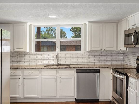 3 MIN Bike Ride to DTW Bentonville. Imagine living in the heart of entertainment and industry! Bentonville is the mecca for business, restaurants, entertainment, biking and more! Experience the charm of this contemporary ranch style home, featuring effortless wood flooring in the living areas and fresh carpet in the bedrooms. The kitchen shines with its stunning granite countertops and stylish subway tile backsplash, creating a bright and inviting atmosphere. The living area is anchored by a lovely fireplace and flows seamlessly onto a spacious patio, overlooking a large fenced backyard ideal for outdoor gatherings. In addition to three generous bedrooms, you'll find a versatile bonus room perfect for an office, studio, or gym, ensuring privacy for your work-from-home needs. The bathrooms are designed with elegant granite countertops, brushed nickel fixtures, and contemporary tile finishes. This home is just a walk or bike ride to the Bentonville square, Razorback Greenway, and several other local attractions.