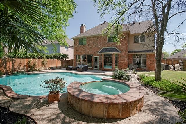 The Coppell Charmer you have been waiting for IS HERE! This jewel of a home nestled in the heart of Coppell has everythingâ¦beautiful handscraped hardwood floors, open & spacious rooms, beautiful granite, backsplash & appliances in the kitchen, vaulted ceilings, plantation shutters, breakfast & family room overlooking a stunning backyard complete with a gorgeous pool & spa, lush landscaping & lots of play space. This is an entertainers dream with warmth & style on the inside and spark & pizzazz on the outside. This perfect little package is wrapped up neatly with a bow in one of Coppell's most outgoing neighborhoods, between block parties & summer soirees to Holiday gatherings you will instantly feel at home!