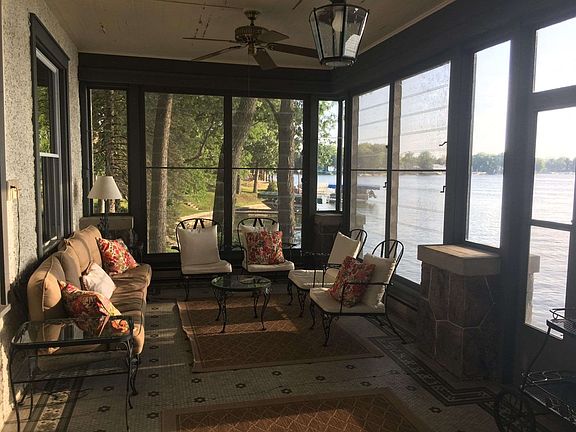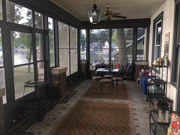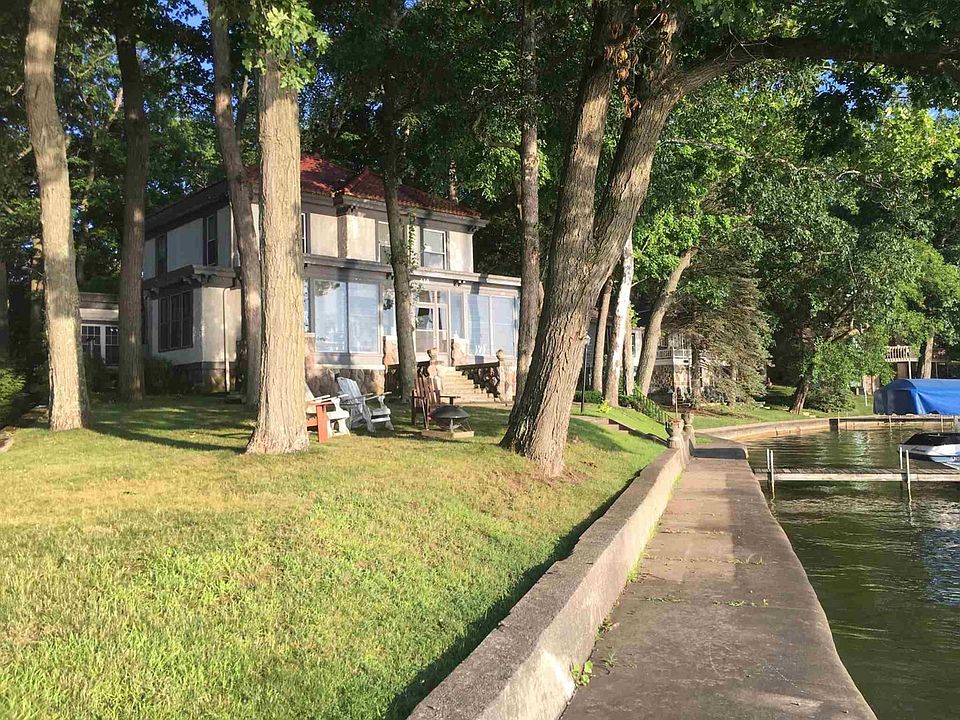 Picturesque & Historical Mediterranean Style Lake Home is an absolute one of a kind on Sylvan Lake with 124 feet of lake frontage! Where to start? Everything stays, including the boat! 4 bedrooms and 3 full baths plus a family room currently used as a bunk room. Kitchen with ample cabinets, one of a kind features plus original built in fridge repurposed into storage and large mudroom nearby. Traffic door leads to formal dining room. Living room with marble fireplace, leaded glass windows and built-in bookcase. Main floor bedroom with attached bath. Spacious large rooms with 10 foot ceilings & many windows throughout the home provide natural light. Expansive front porch overlooking the lake that has large jalousie style windows & unique tile floor. Original trim, woodwork, hardwood floors in very good shape. Stucco exterior with aluminum trim. Large patio terrace for entertaining. Concrete seawall. Stucco shed on back of house for lake toys! *Additional 75' x 95' lot with 2 car garage, storage shed plus additional parking.