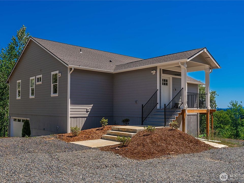 This new 2025 one-level home offers 2,126 SF with 3 bedrooms and 3 baths. The great room boasts vaulted ceilings and windows overlooking nature, plus a slider leading to the large deck. Entertain in the dining area or gourmet kitchen with quartz counters, huge island, stainless appliances, heated tile floors, and pantry. The primary suite features double sinks and heated floors as well. The second bathroom has double sinks and quartz counter tops. The garage has 12-ft ceilings, allowing multiple vehicles and all your toys. Mini-split heating/cooling, quartz throughout, and thoughtful upgrades—even space for a wine cellar! Seller spared none while building this one.