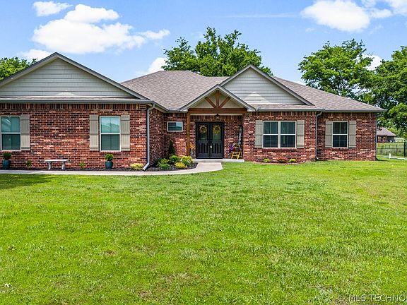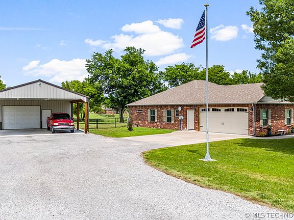 Welcome to 410 Twin Creeks Lane, Pryor, OK! This stunning custom-built rural home is a true gem, offering the perfect blend of countryside serenity and urban convenience. Boasting 4 bedrooms, 2 bathrooms, and 1980 sq ft of meticulously crafted living space, this one-owner home sits stately on 1.85 acres of land just outside the city limits. With easy access to Hwys 69 or 20, your commute couldn't be more convenient. Step inside to discover the heart of the home - a luxurious open-concept kitchen, dining, and living area adorned with exquisite granite countertops, a spacious island, and gleaming stainless steel appliances. Warm yourself by the wood pellet stove as you enjoy the company of family and friends. The split floor plan ensures privacy and comfort, with each of the four generously sized bedrooms offering ample closet space for all your storage needs. Outside, unwind on the covered patio deck and soak in the breathtaking Oklahoma sunsets. The expansive lot features mature trees, black-coated chain-link fencing, and even an interest in the pond - perfect for nature lovers. Calling all workshop enthusiasts! The huge 26x32 workshop with electric and 2 bay doors is a DIYer's dream, providing ample space for all your projects and storage needs. Plus, with a 26x24 covered carport and an attached 2-car garage, there's plenty of room for your vehicles and more. This rare find is just waiting for you to make it your own. Don't miss out on the opportunity to experience the unique charm of country living and city convenience. Schedule a showing today and start envisioning your future at 410 Twin Creeks Lane!