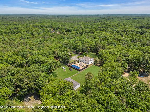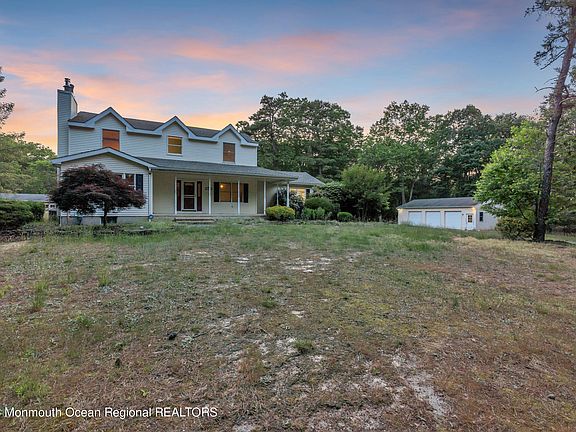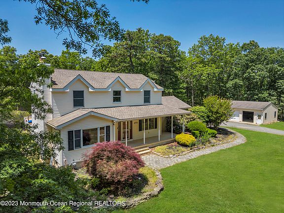 Rocking chair covered front porch meets a Private tree-lined driveway up to the tranquil 3.30 acre 4 bedrooms, 2 full and one-half bath. Horse barn with 4 stalls and tack room. 2 paddocks in front and back of horse barn. Trails nearby for hours of exploring on horseback or by ATV. Free standing garage/barn with electricity and three garage door/parking/equipment storage. The two-story foyer has a curved staircase and lots of light. Living room features a beautiful stone hearth with antique beam mantel. Country kitchen with eat-in area sits between a bright dining room with slider door w/access to deck on one side, and full family room on the other. Laundry room on first floor in mudroom off of the 2-car attached garage.