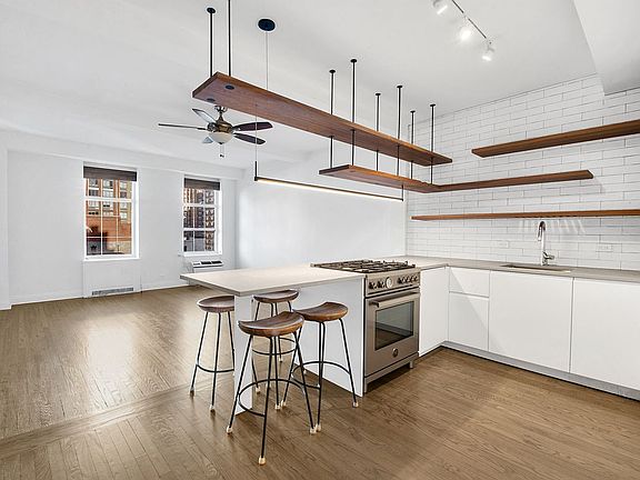 Bathed in natural light, this residence showcases open northern views over the charming townhouses along West 24th Street. Graced with timeless pre-war character, the home features high-beamed ceilings, and refinished hardwood floors. The newly renovated open chef’s kitchen is appointed with premium Bertazzoni and Bosch appliances, while the bathroom retains its classic charm with subway tile and a pedestal sink. Oversized closet space adds both comfort and practicality.