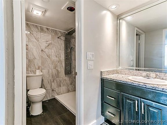 Euro-style toiletStunning downtown tulsa viewsDeep stainless barn sinkFinished baseboardsModern ceiling fansModern lightingLarge granite vanity