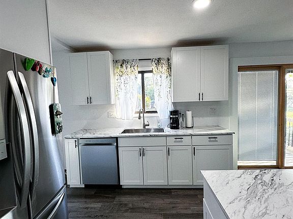 Welcome home to this beautifully updated raised ranch tucked at the end of a quiet dead-end street in Winner, SD — just minutes from schools, parks, the city swimming pool, and within walking distance to the city fishing pond. This 3-bedroom, 2-bath home offers a functional and flexible layout with an unfinished (NTC) bedroom and plumbing in place for a third bathroom in the walkout basement—ideal for future expansion or multi-generational living. The upper level welcomes you with fresh paint throughout, crisp white trim and baseboards, new carpet (2025), and luxury vinyl plank flooring (2020). The remodeled kitchen is bright and modern with white cabinetry, sleek marble-look counters, updated lighting, and stainless steel appliances—including a new dishwasher (2025) and refrigerator (2024). The open-concept layout flows seamlessly into the dining and living areas for easy entertaining.The spacious primary suite is located on the main level and features a walk-in closet and a private bath. Two additional bedrooms offer plenty of space for family or guests. The hall bath was updated in 2024 with fresh finishes. Downstairs, the walkout basement includes new vinyl flooring (2025) and a huge family room. Step outside and enjoy summer evenings on the back deck (2020) overlooking a fully fenced, flat, and level backyard—perfect for activities, pets, or a garden. A swing set (2020) stays with the home. Major system updates include the foundation and sewer line for peace of mind. Buyers and buyers agents to verify all MLS information.