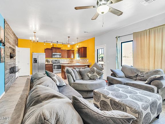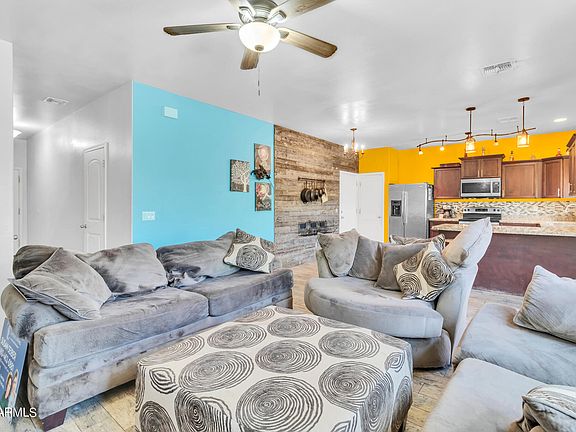 Welcome to this stunning 4 bedroom, 2.5 bath home located in the Phoenix. With a spacious floor plan & over 1,600 square feet, this home offers plenty of room for comfortable living. As you step inside, you'll be greeted by the beautiful wood-like tiled floors and vibrant colors that create a warm inviting atmosphere. The kitchen is a true highlight of this home. It features ample cabinets, granite counters, stainless steel appliances, tile backsplash, & pendant lighting that adds a touch of elegance & enhances the modern aesthetic of the kitchen. Completing the kitchen is a lovely wood slat accent wall, adding a unique & stylish element to the space. The bedrooms are generously sized. The primary suite is a private retreat, featuring an ensuite bathroom. A wonderful must see!