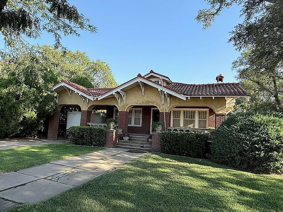 This stunning brick home with a classic tile roof exudes beauty and character. The meticulously maintained landscaping frames the property perfectly, with ample space in the backyard for a garden or outdoor retreat. A two-car garage and an attached storage shed offer plenty of practical convenience. The expansive covered front porch provides a welcoming space to relax and enjoy time with family and friends.