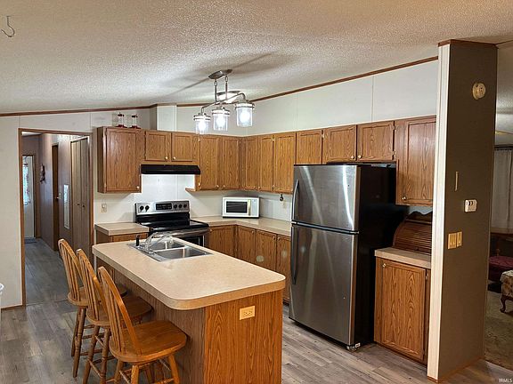 Located at the edge of Edwardsport. Park-like setting, large one acre corner lot. This manufactured home features an open concept, an abundance of closet space, & spacious owner's suite. Living room, family room with fireplace, kitchen with bar/island, screened in porch area, covered front porch. Storage barn. New Furnace, A/C, and water heater in last 3 years. All new appliances, new light fixtures in living room and kitchen. New ramp installed. 2 parcels.