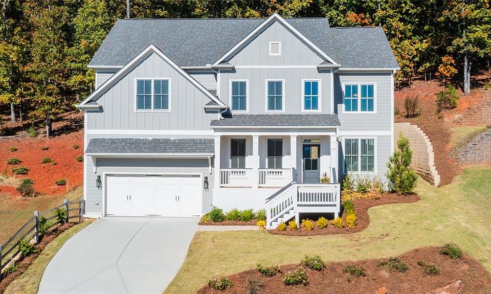 Experience unparalleled luxury and sophistication in this stunning, better-than-new custom home. Set on an approximately ¾ acre (+/-) cul-de-sac lot within the highly sought-after Harrison High School district, this residence features exquisite appointments and designer finishes throughout. Enjoy stunning sunrise views of the Atlanta skyline, whether from the rocking chair porch or the owner's suite sitting area—a rare feature in this home. Guests are greeted by a dramatic two-story foyer adorned with gleaming hardwood floors, that carry throughout the main level, staircase, upper foyer and owner’s suite. To the left of the foyer, a gorgeous dining room boasts floor-to-ceiling wainscot paneling and a designer chandelier, providing an ideal setting for formal gatherings. From the dining room, step into the chef-inspired kitchen, featuring custom cabinetry, quartz countertops, a stylish tiled backsplash, and a spacious center island with breakfast bar and designer pendant lighting. High-end Café stainless steel appliances include double ovens, a gas cooktop, built-in microwave, and refrigerator. A walk-in pantry offers ample storage, while the sunny breakfast nook overlooks the landscaped back lawn. The kitchen flows seamlessly into a cozy fireside family room, complete with custom built-ins and a fireplace accent wall. A main floor bedroom serves perfectly as a home office. The mudroom, located off the garage, features a bench and multiple cubbies to keep coats, bookbags, shoes, and athletic gear organized. The garage interior showcases high ceilings, an epoxy-finished floor, and wiring for an EV charging station. Upstairs, discover four additional spacious bedrooms, including the primary suite. The owner's suite features a sitting room, hardwood floors, a walk-in closet with a professionally designed system, and a lavish spa-like bath with a soaking tub, double vanities with quartz countertops, a large separate marble-tiled seamless glass shower, marble tile flooring, and a private water closet. One secondary bedroom includes an ensuite bath for added convenience. A full, unfinished basement stubbed for a bath, offers abundant space for future expansion and extra storage. The property backs onto natural greenspace, where deer can often be seen grazing. A gas line is installed for easy grilling on the rear patio, perfect for entertaining. The Ward Farm at Lost Mountain community is ideally located across from Lost Mountain Park and is convenient to shopping, dining, The Avenue of West Cobb, Oregan Park, Marietta Square, Kennesaw National Battlefield Park, as well as Marietta Country Club and Brookstone Country Club for golf enthusiasts. Award-winning public schools serving the area include Vaughn Elementary, Lost Mountain Middle, and Harrison High. Nearby highly ranked private schools include North Cobb Christian, The Walker School, and Mount Paran Christian School.