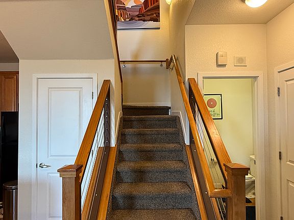 On the upper level, the primary bedroom offers plenty of space and privacy, with two large closets, an en-suite bathroom with double sinks and a large soaking tub. The secondary bedroom is also spacious and has its own adjacent full bathroom. W/d conveniently located on this level.
