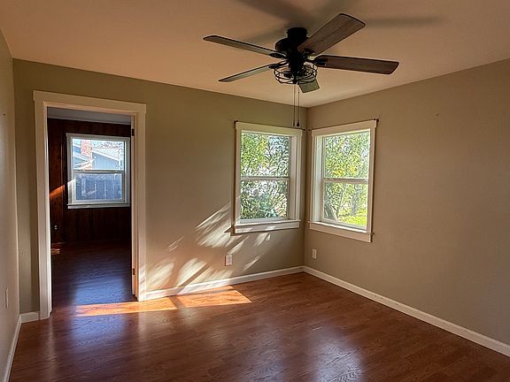 Inside, you'll find a cozy living space with warm wood accents, updated flooring, and abundant natural light. The home includes a true bedroom, plus an additional room with a closet that functions perfectly as an office, guest space, or bonus room please note that this room is a pass-through to the primary bedroom.