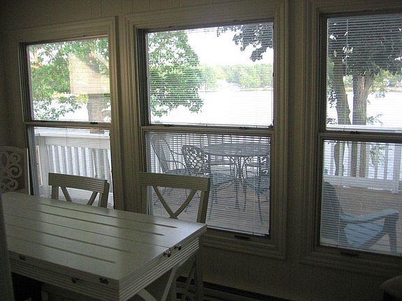 Lake front living! This house is right on the lake and has a dock, paddle boat, and row boat included. 4 bedrooms, 2 full baths. 2 car detached garage. Large deck overlooking the water. Fully furnished. Close to town and the expressways. Beautiful view of the lake. Owner pays for trash, water, and sewer. No pets. No smoking. One year lease One month security deposit