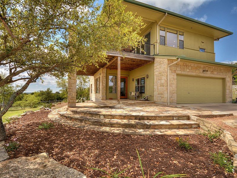 Unique Texas contemporary on 1+ acre. Absolutely stunning views of Mansfield Dam & Lake Travis (even better when full!). Upside down floor plan maximizes views. Stained & scored concrete, rich hardwood flooring. Kitchen w/granite, stainless, & slate tile bksplsh. Private office w/built-ins, pocket doors. Panoramic views from family room & kitchen. Huge walk-in mstr shwr w/multiple shwr heads. Gameroom w/wet bar. Fresh paint throughout. Peek-a-boo windows. Dbl sliding doors to huge cvrd patio & balcony.