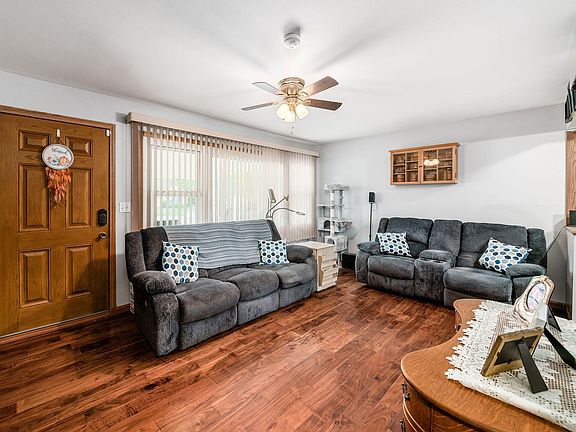 Welcome to this charming 5-bedroom, 1-bath Cape Cod home in an established neighborhood, close to community parks and no HOA. The house boasts a large, spacious kitchen with newer appliances, a first-floor laundry, and a versatile space that can be used as a dining room or rec room. This lovely home features a fenced yard adorned with a white picket fence and a covered front porch, the perfect spot for morning coffee or evening relaxation. The best of comfortable living and convenience awaits you. All you have to do is make it your home.