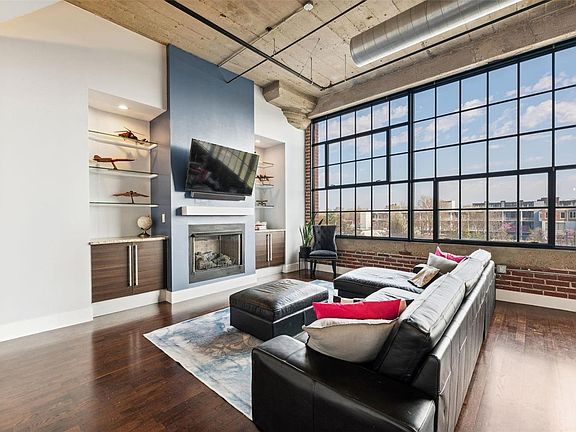 Live in a piece of St. Louis history in this stunning Central West End condo just a block from the Cortex District and close to City Foundry. Housed in the historic Ford Motor plant, this home is not short on wow factor. A wall of windows from floor to sky-high ceiling provides a spectacular view of the city below. The living room features a warm gas fireplace and is open to the dining room and kitchen. The primary bedroom offers a spacious ensuite with a dual-sink vanity, soaking tub, jetted shower, and walk-in closet. A second bedroom and full bath ensures your guests feel right at home and laundry is conveniently in-unit. Enjoy the billiards room on your floor, and other amenities, including a pool and fitness center, that are just a short elevator ride away. Fee includes internet, cable & gas for fireplace. Washer, dryer & refrigerator are included. Move-in will be a breeze thanks to the freight elevator and off-street, covered parking is the icing on the cake. Location: City, Interior Unit