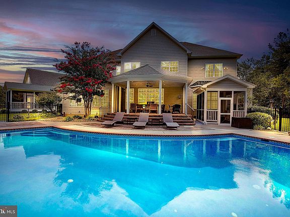 Truly a rare find. Almost 10,000 sq feet of stunning living space that has been maintained to a level not often seen. Every square inch is perfection. From the gorgeous brick exterior to every mechanical system in the house, all is either newer or in mint condition. This is the largest home in the community and was once the model home, which means it has all the bells and whistles! Gourmet kitchen includes granite counters, custom cabinetry, 6 burner gas stove, double ovens, two side-by-side refrigerators and a stand-alone ice maker. The open family room and separate office include custom woodwork that will take your breath away. There is a full in-law suite on the main level complete with sitting area, full bath and a private screened porch. Nearby is the laundry center and mud room. On the upper level is the spacious owners' suite with its own gas fireplace, coffee bar, private bath and a spectacular walk-in closet. 3 additional bedrooms sit on the upper level. They are spacious and bright, 2 with private access to full baths. If you enjoy entertaining, the lower level is something to behold. Expansive with an enormous 2nd kitchen w/ gorgeous counters and cabinetry, a theatre room and a spectacular cherry wood wall unit w/ a fireplace at the center. Nearby is a workshop space and covered steps that lead outside. The outside is a true oasis. Centered around a fully fenced swimming pool - all newly tiled, heated and salt water. The spectacular covered stone patio and 2 gazebos bring peace and shade. Two outbuildings provide all the space you need for any hobby or storage. Both have concrete floors and electricity w/ professional lighting. Home is located on a tranquil 2 acres yet close to shopping, sought after schools and only a 30 minute drive to Washington DC and 20 minutes to Patuxent River Naval Station. Truly a rare find.