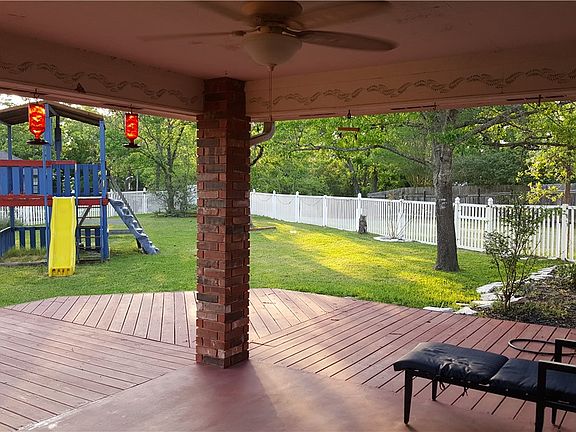 Corner lit fireplaceLarger lotLarge living spacePlay setLarge and open backyardGranite countersNew tile floors