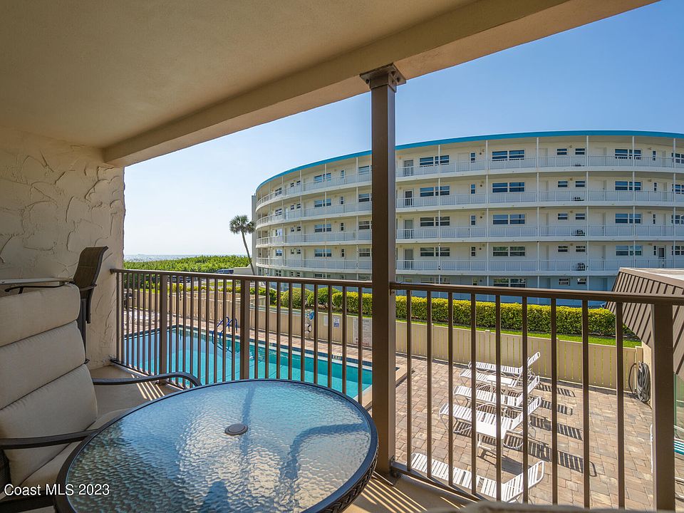 Ocean views, beach access, resort-like amenities...all in a central Cocoa Beach location! This two-bedroom south facing condo with ocean views from the balcony is filled with sunlight streaming in from the large sliders. The open floor plan is spacious enough for a large dining table and still leaves plenty of room to relax and kick up your feet. Beyond the dining space is a pass through to the kitchen with granite countertops and a large pantry. The primary suite is just off the living space and shares an equally incredible view, bathroom, and large closet. The 2nd bedroom offers additional space and storage. Bike or walking to many local attractions, restaurants, and shopping. Selling furnished, move right in, and start enjoying the beach lifestyle you have been dreaming of.