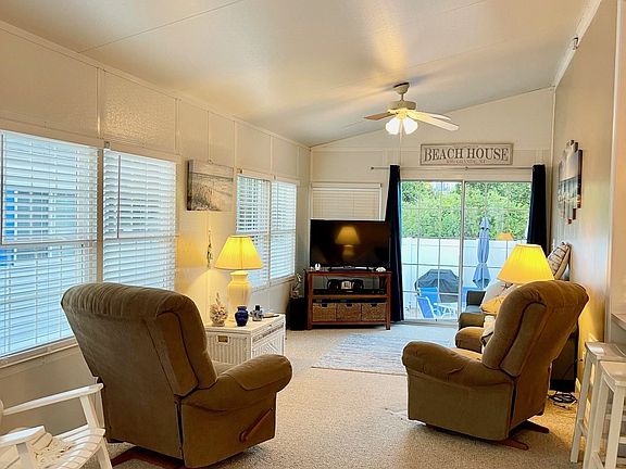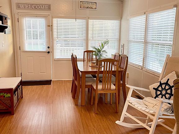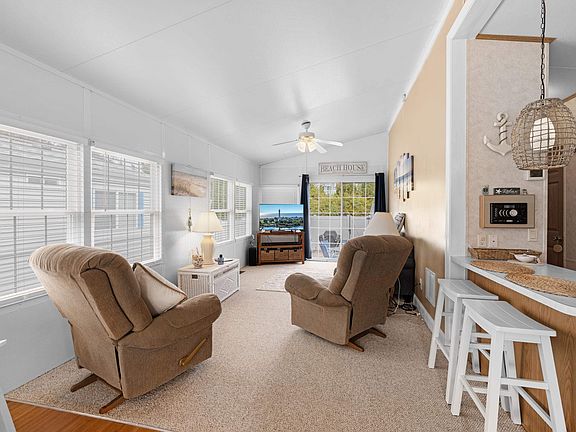 Welcome to Cape Shore Resorts – Your Ideal Coastal Retreat This beautifully maintained and fully furnished home offers the perfect combination of comfort, convenience, and beachside charm. With two bedrooms and an open-concept layout, the living room, dining area, and kitchen flow seamlessly together, creating an inviting space that’s perfect for relaxing or entertaining. Outside, a fully fenced and paved yard provides an ideal setting for outdoor dining, sunbathing, or gathering with friends and family. A newly added oversized outdoor shower with a private dressing area makes rinsing off after a day at the beach both easy and convenient, helping to keep the interior clean and sand-free. The home also features an oversized storage shed, ideal for housing bikes, beach equipment, and other outdoor gear. Inside, recent updates include newer flooring in the dining area, a new toilet, and a new microwave. Enjoy peaceful views from the extended front deck and the privacy of a fully fenced backyard. Significant improvements such as a new HVAC system and rubber roof, both installed just four years ago, offer enhanced comfort, energy efficiency, and durability. This turnkey home comes move-in ready with tasteful, newer furnishings, making it a perfect option for anyone seeking a serene seasonal escape or a charming vacation home near the beach. Cape Shore Resorts offers an array of community amenities included with your monthly rent. These include water, sewer, trash removal, and property taxes, along with access to three swimming pools, a basketball court, bocce ball, a playground, picnic areas, a scenic gazebo, and a stocked fishing lake. Residents also benefit from professionally maintained common areas and coin-operated laundry facilities. While occupancy is limited from November through March, Cape Shore Resorts stands out as one of the few communities that allows weekend access and extended stays over major holidays during the off-season. The monthly rent for this home is $640, and an annual lease is required. All applicants must pass a credit and background check.