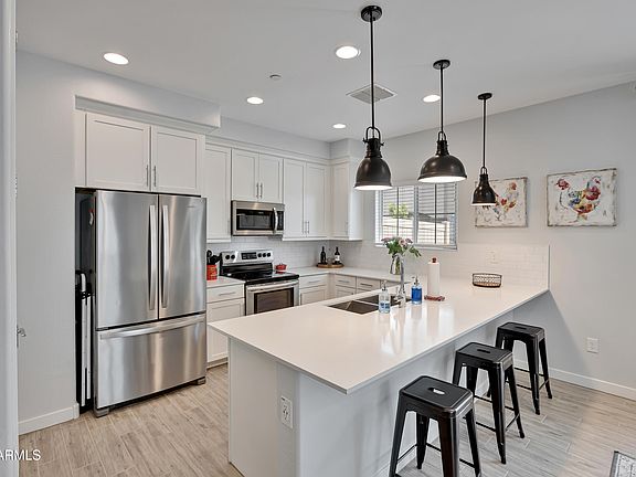 Available furnished in the Pinelake Place gated townhome community. This floor plan has two bedrooms and a loft on the second floor with a spacious living area and kitchen on the first floor. The kitchen has beautiful white cabinets, quartz countertops, and stainless steel appliances. The nook area opens up to the outside patio to enjoy those nice evenings. 2 Car Garage. Refrigerator/washer/dryer are also included. Enjoy the community pool and spa, tot lot, green belts, ramada's with BBQ grills, ping pong, and cornhole. The home is in a top rated school district in addition to charter schools like Basis nearby.. Price road tech corridor is minutes away! Close to Fulton Ranch & Shopping