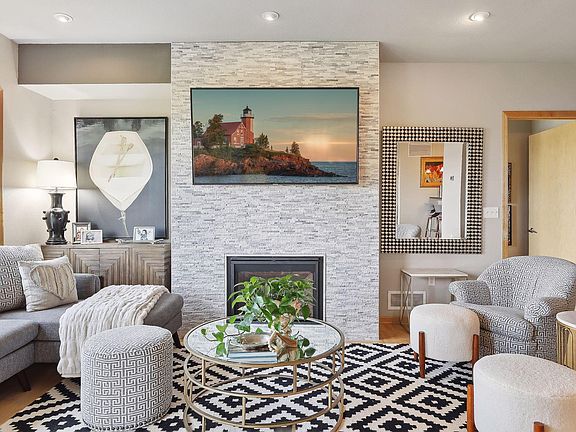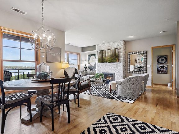 Private condo living at its finest in the Lakeview Lofts that offers breathtaking lake views of West Arm Bay! The primary bedroom includes spectacular views of Lake Minnetonka, a walk-in closet, full bathroom with a separate tub and tiled shower, white enameled cabinets, and granite counters! Enjoy the living room entertainment with a stone surrounding gas fireplace, TV viewing area and close access to the walk-out private back deck overlooking West Arm Bay. The kitchen offers a high-top bar stool area for dining, granite counters, under cabinet lighting and stainless-steel appliances. The 2nd bedroom is perfect for when guests are in town or if you need office space! Classic French doors lead you into the den which could also be used as an added guest room or office/storage space. Other features include a dining room, in unit laundry and a 2nd full bathroom. Incredible location that is within walking distance of Lord Fletcher’s, The Dakota Trail and lake access!
