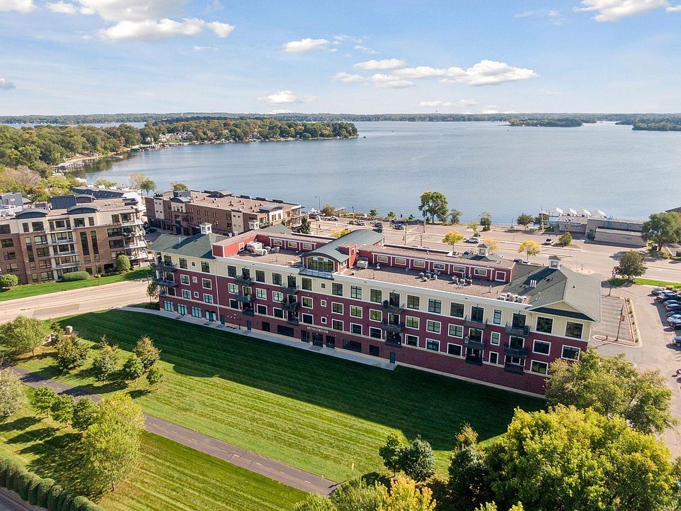 Enjoy sweeping views of Spring Park Bay on the shores of Lake Minnetonka from your own private deck! SW facing Sunny corner end unit with windows on 2 sides. Your own gas grill on private deck for your convenience. Primary large bedroom with private ensuite with double sinks, granite countertops, with separate tub and shower. All closets throughout are custom walk in with built in storage shelving and drawers. In unit laundry for your convenience. Rich hardwood floors flow through main living space. Cozy up to gas burning Fireplace while enjoying the lake view. Carpet in 2 bedrooms. Gourmet kitchen with gas stove, granite counter tops, ceramic backsplash and stainless steel appliances. Checkout 2 assigned underground parking stalls #51 & #52, and 5X7 Storage Locker #21. Located directly on the Dakota Trail for you to enjoy biking & hiking. Residents of this exclusive "Lakeview Lofts" community enjoy access to a top-floor community room offering breathtaking views of Lake Mtka a perfect setting for gatherings. Stay active in the main floor workout room on the greenway or explore miles of trails right at your doorstep. This meticulous corner unit is VERY well maintained!! Ready for you to enjoy!! MOTIVATED SELLER!!