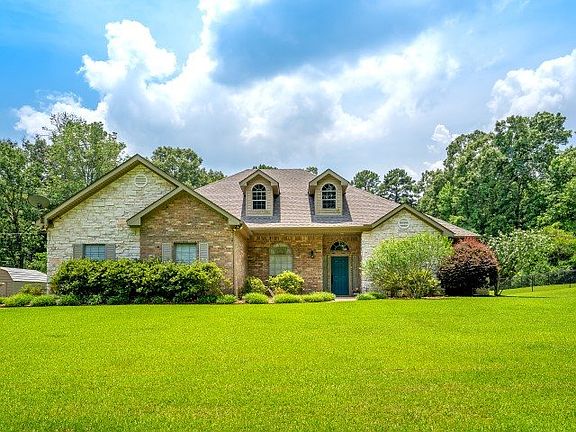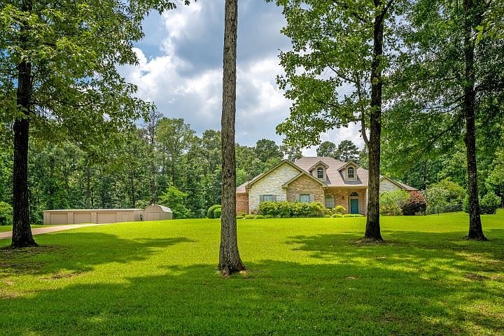 Spectacular Hallsville Home on 5 acres with a 3 car workshop, Inground Gunite swimming pool with hot tub, storage building and more! Enjoy watching the deer and wildlife from your home! 4Br/2.5Ba with office, enclosed covered patio, 2 living area's, formal dining, breakfast room, utility room and more! Large open kitchen, lots of cabinetry and tons of space for entertaining! The grounds are immaculate! Home is clean and very well maintained! Some updating may be desired.