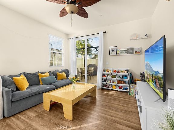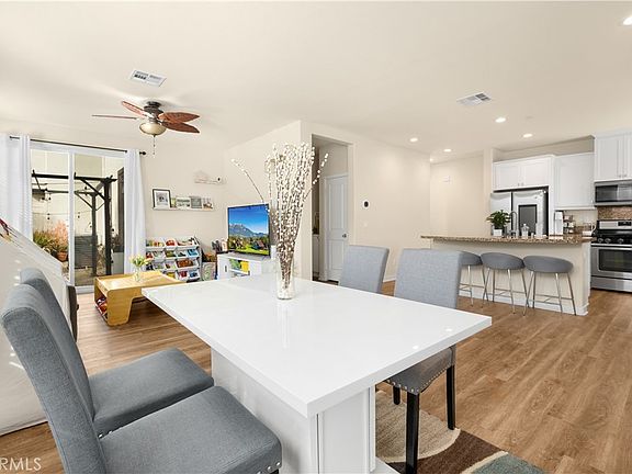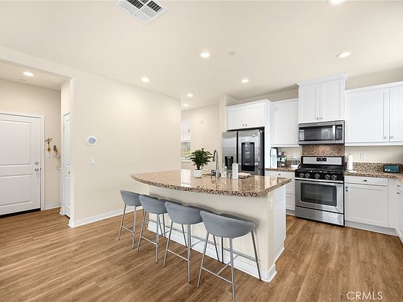 Beautiful detached home in the newer resort-style community of Pepper Tree at Mission Lane, Oceanside. The open, bright floor plan features white shaker cabinets and high ceilings throughout. The kitchen includes stainless steel appliances, a center island with utility sink, and ample storage. Luxury vinyl plank flooring flows through the main level, while spacious bedrooms offer ceiling fans and mirrored closet doors. The primary suite has a walk-in closet and ensuite with a large shower and dual sinks. The versatile loft adds extra living space. Bathrooms and upstairs laundry are finished with white cabinets and tile floors. Energy-efficient and move-in ready, the private patio with custom pavers is perfect for entertaining and gardening. The oversized 2-car garage provides plenty of storage. The community features a huge pool, spa, cabanas, BBQ, fire pit, walking paths for dogs, playgrounds, and parks—all with low HOA dues, no Mello-Roos. Located in a quiet community and just 6 miles from Oceanside Harbor and a 10-minute drive to the beach. Close to dining, shopping, trails, golf, and more!