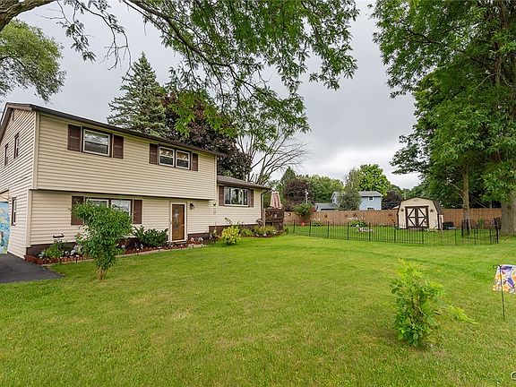 Welcome to this charming, meticulously cared for split level, located on a corner lot in Liverpool Schools.Has 3 levels of living space-top floor 3 bds, full bath, eat-in kit, dining room beaming w/natural light, slider leading to freshly painted deck, beautifully landscaped yard, shed, fully fenced in. 2nd floor entrance to foyer, family room, in-law suite w/ full bath, separate entrance. Then finished basement w/ laundry room, extra family room/Den All w/a NEW roof, oversized driveway for extra parking, close to all amenities, schools, parks. Schedule your showing today!!! Delayed showings until 9/4