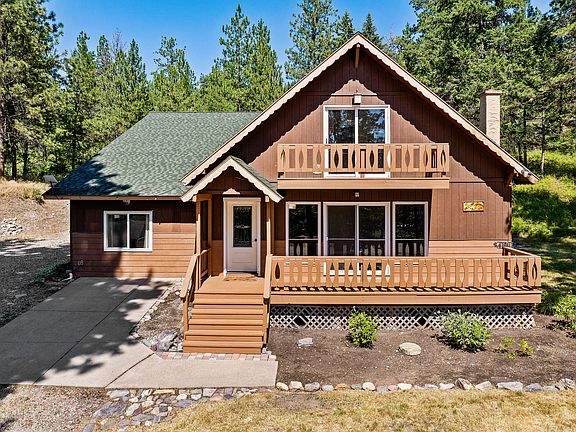 Tucked among the trees in the Jette Meadows subdivision—just 10 miles north of Polson and minutes from Flathead Lake—this spacious 4-bedroom, 3.5-bath home offers privacy, comfort, and direct access to endless outdoor recreation. Set on nearly 2 acres and bordering thousands of acres of Tribal land, it’s a dream for those who love hiking, exploring, or simply enjoying nature right out their back door. With over 3,000 square feet of living space, the home features exposed beams, large picture windows, and tongue-and-groove ceilings that bring warmth and character throughout. The main level includes a roomy kitchen with tile flooring, a bay window, and tons of cabinet space. Two living rooms offer flexible space to relax or entertain, and you'll also find a wood stove, two bedrooms, a full and half bath, a storage room, and a dog-friendly utility room with built-in wash station and access to a fenced run. Upstairs, enjoy a private guest bedroom and bath, additional storage, and a generously sized primary suite with vaulted ceilings, multiple closets, and a spacious ensuite bathroom featuring a soaker tub, separate shower, and dual vanity—plus a bonus room perfect for a home office, gym, or nursery. Step outside to a spacious front deck, oversized back patio, gazebo-covered hot tub, mature trees, and plenty of parking for all your Montana toys—plus a detached 2-car garage and brand-new shed. An assumable VA loan adds to the value and potential affordability of this one-of-a-kind property. Whether you’re looking for peaceful living or an adventurous lifestyle, this retreat checks all the boxes.