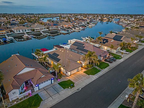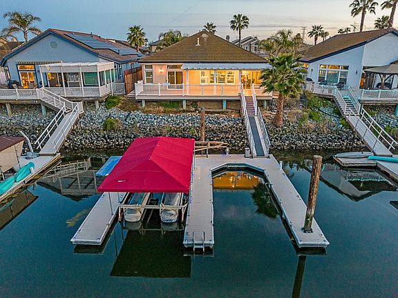 Experience the serenity of Waterfront living, a gateway for Adventure, and everlasting Family memories! Perfect Trifecta of having a Southern exposure home, Northern exposure Sunrise and Sunset views over the bay, AND a Turn Key home. Home features Owned solar, Expansive entertainers kitchen where you can watch the boats, Quartz counters in Kitchen and baths, surround sound, high ceilings enable light to flow throughout. Quiet Cul de Sac. Double U dock with Canopy and Hydro hoist. Automatic sun shade over the newer decking. Imagine waking from the primary bedroom and exiting directly to the deck and enjoying the luxury of the sunrise over the bay. Boating an hour to spend your afternoon under the Golden Gate; then enjoy a wonderful sunset with a glass of wine without glare because of the Northern orientation. Your aquatic adventure awaits from your private dock to Powerboating, Jet ski, Fishing, Kayak, Paddleboard, float, watch parades, or Cruise. Quintessential California.