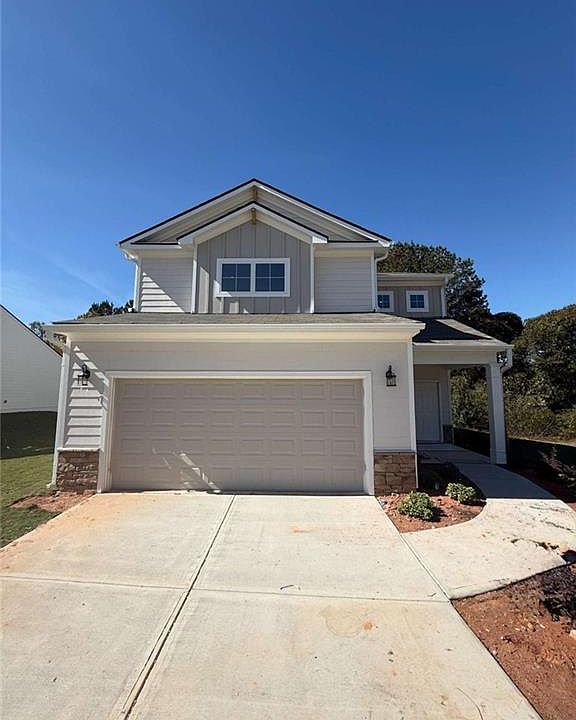 Home for the Holidays! Ready Now: The Juniper CC by Kerley Family Homes is move-in ready and offers 4 bedrooms, 2.5 baths, and an inviting open-concept design with 9' ceilings on the main level. The spacious kitchen features a large island with three pendant lights, stainless steel appliances, and abundant cabinet space, perfect for both everyday living and entertaining. The covered patio extends your living space outdoors for year-round enjoyment. Upstairs, the elegant primary suite includes a framed shower door and built-in niche, plus a generous walk-in closet. Three secondary bedrooms, a full bath, and a conveniently located laundry room complete the second floor. Home includes blinds on all windows, washer & dryer, gas range, microwave, dishwasher, and side-by-side refrigerator. Located in a sought-after community with easy access to I-20, Arbor Place Mall, shopping, and dining. Builder's warranty and Pestban system included for added peace of mind.