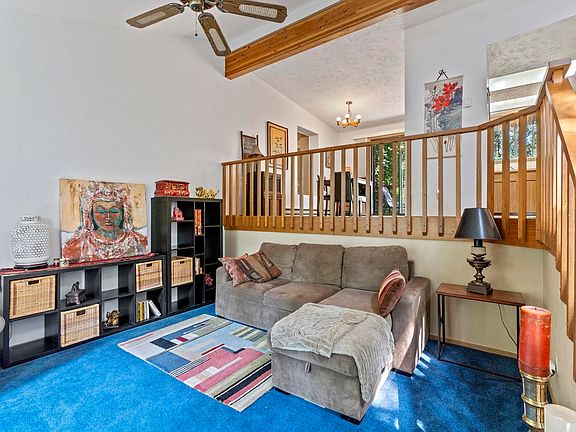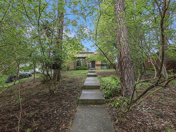Located on a quiet dead-end street on the South Hill, this terrific California split level home is set back on an oversized wooded lot for privacy. There's so much this home offers a new lucky buyer, including brand new exterior paint, updated flooring, and the deck and roof were replaced in 2020. Great floorplan features cathedral ceilings, beautiful woodwork, and oversized windows for plenty of natural light. Main level features 2 bedrooms, both with double closets. Primary bedroom is connected to the full bathroom, which even has a large skylight. Kitchen offers plenty of cupboard and counter space, with adjacent informal dining area. Daylight basement includes 2 fully finished rooms, one of which could easily be used as a non-conforming bedroom. There's also an additional unfinished room to use as you wish, plus there's a rough plumbed-in bathroom! Outside, enjoy your private fenced backyard with off-street parking and room to add a small garage or carport. Don't wait on this great home!