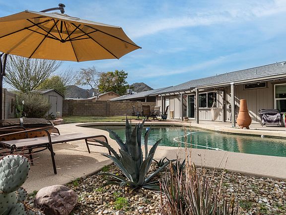 Mountain bikers, hikers, and trail runner's dream home located on South Mountain Park Preserve! Walk or ride out your front door to enjoy miles of trails. Quiet and well established neighborhood. This fantastic 4 bed/2 bath Ahwatukee home has NEWER WINDOWS, NEW HVAC, and NEWER ROOF. Entertainers kitchen with huge island, upgraded kitchen cabinets and granite counters! Popular tile ''wood'' flooring in all the right areas. Hall bath has been tastefully remodeled too! Spacious family and dining room both open to the kitchen. Inside laundry! Backyard is amazing, with grass to play and the pebble tech pool is waiting for you! Enjoy great views, jogging, walking distance to hiking or mountain biking! Top rated Kyrene School. Hillside Spot, Nello's and other great restaurants close by.