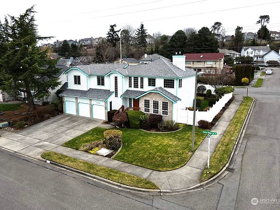 Welcome Home to Harbor Ridge. This beautifully situated corner lot home in the well established neighborhood of Harbor Ridge is waiting for you. Vaulted ceilings and open concept living awaits you as you easily navigate this homes faboulous layout. Cozy up in the primary bedroom with attached reading room with gas stove and views of downtown Tacoma. Live large and have people gather around in the living room with adjoining open island kitchen with plenty of access to the beautiful back deck/yard. 3 car garage for plenty of parking and a neighborhood worthy of taking many leisurely strolls. Come see it today. Features: Primary Bed w/reading room and 5-Piece Ensuite, 2 additional bedrooms. Den with fireplace, living room and spacious kitchen.