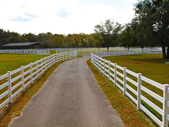 Upon entering the private gates, the four board vinyl fence lined drive and the six foot concrete wall the landscape unfolds to reveal beautiful green pastures, mature landscape with an aerated pond. This 10.32 acre very private equestrian estate is located in the highly desirable area of Wesley Chapel. The spectacular private setting is minutes from many amenities and 22 miles from downtown, Tampa. Truly unique with a cohesive design and functionality for an estate home or a get-away retreat. The stunning state-of-the art horse barn provides four very large stall, hot and cold wash rack and a one bedroom efficiency with gas fireplace. A second concrete building is used for entertaining with a kitchenette, gathering room, living area and two bedrooms for guest. The third building is used for dog kennels with six indoor pens and four outdoor runs. A fully lighted pasture for evening activities. There is a drainage system throughout property to handle surface water. Have the best of both worlds, country living with close proximity to professional sports, entertainment, shopping and dining that Tampa area has to offer. Future site plan and development zoning RES-6 plans for the developers is also a possibility.