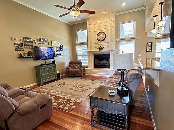 Beautiful 4 bedroom plus office/playroom and 3 car garage, with gorgeous wood floors, open floor plan, tall ceilings, and a living room that has a warm and inviting fireplace as its focal point. A dream kitchen that includes tons of counter space, new stainless steel appliances, pantry, built-in wine rack, and lots of storage. The master suite includes a wrap-around walk-in closet, jet tub, separate shower, and double sinks—a large backyard with a spacious covered patio with an outdoor fireplace and storage. New roof in 2021!