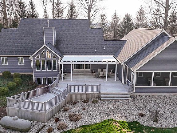Look no further than this immaculately kept property on just under 3 acres in Roanoke school district! This craftsman style home offers 5,488 SF of living space with 3, possibly 4, bedrooms and 3 1/2 baths on a full finished basement. The serene outdoor space can be enjoyed on the large deck with maintenance free pergola, the screened in porch, or simply sitting on the front porch enjoying the sunset. The first floor of the home features a large family room with vaulted ceilings and floor to ceiling fireplace. The spacious main level master suite is complete with a large walk-in closet, extra closet for storage, stand up shower, garden tub, and two separate vanities. The generously sized laundry/mudroom is located directly in from the garage. The kitchen has an exceptionally large walk-in pantry, quartz countertops, and is open to the dining area that exudes an abundant amount of natural light. A double door office is at the front of the home off of the foyer. At the top of the open staircase, you overlook the family room and are led to two spacious bedrooms with enormous closets and a full bath. Down the wide staircase to the basement, you enter into another large family room with plenty of light, rec room/weight room, potential 4th bedroom with huge walk-in closet, and a full bath. The utility room is well kept and provides plenty of storage space along with extra closets located throughout the basement. The 16x32 outbuilding has plenty of storage for lawn equipment or small animals. The 40x60 pole barn is in pristine condition and is insulated and heated. It has water, a hot water heater, and is on its own electrical service. There is also a 330 gallon propane tank exclusive to the barn. The barn is complete with a 3 bay sink and plenty of cabinet space. Some updates to the property include roof, windows, siding, landscaping, basement rec room/weight room floor, and new geothermal blower motor. The dishwasher and double oven are newer and the washer and dryer are 1 1/2 years old. All appliances are included.