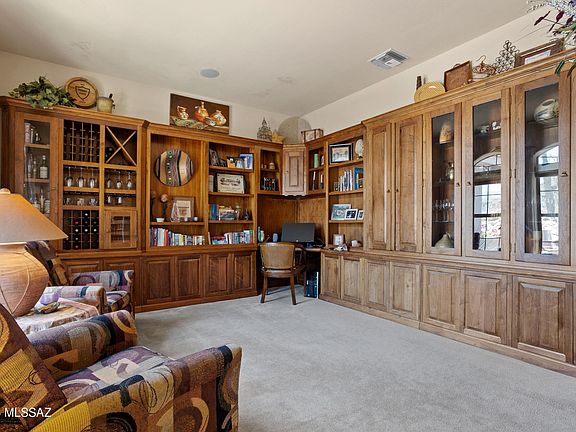 Perched on an elevated lot in Agua Caliente Estates, this stunning home showcases breathtaking mountain, desert, and city views from every room. Set on over an acre of pristine Sonoran landscape, it offers privacy and serenity just minutes from Tucson amenities. Grand windows fill the home with natural light. The office features lavish custom built-ins and a bar. The primary suite includes a large walk-in shower and soaking tub. The backyard offers a built-in spool (spa/pool combo) for year-round outdoor enjoyment with awe-inspiring sunsets. This home features a third-car garage expertly transformed into a fully equipped woodworking workshop with a dedicated ventilation system, ideal for hobbyists & professionals alike. Own a home that celebrates the beauty of the Southwest.