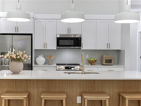 Large granite waterfall islandCustom light fixturesWhole-home dehumidifierWhole-home reverse osmosis systemElevated corner lotImpact-resistant windows and doorsFrameless glass shower doors