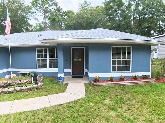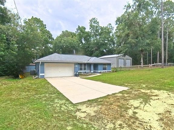 Motivated Seller!! Don't Miss This Beautiful 3-Bed, 2-Bath Home on Nearly Half an Acre in Sunny Florida! This stunning 3-bedroom, 2-bathroom home sits on a combined double lot totaling 0.46 acres, giving you plenty of room to enjoy your own private slice of Florida paradise. As you approach the home, you’ll be greeted by a charming small pond located just outside the front door — a tranquil touch that adds to the peaceful, welcoming ambiance of the property. The well-maintained landscaping creates the perfect first impression before stepping inside. Inside, you’ll find a spacious 1,362 sqft interior fully tiled with porcelain wood-look tile throughout — combining style and easy maintenance. Step through the front door into a bright and open living space that flows seamlessly from the large living room into the dining area — perfect for entertaining. The updated kitchen features stainless steel appliances (all replaced within the last 5 years), and a bar-height counter ideal for casual meals or coffee chats. The split floor plan offers privacy with a generous owner’s suite that includes a large walk-in closet with built-in shelving, safe does convey and an en-suite bathroom featuring dual sinks and a luxurious jetted bathtub with shower combo. The two additional bedrooms feature accordion-style closet doors, porcelain tile flooring, and ceiling fans for comfort. Step outside through the French doors to a screened-in porch — perfect for enjoying Florida evenings bug-free. The fully fenced backyard includes an 18-foot above-ground pool for cooling off, a shed for extra storage, and a small pole barn for tools, wood, or additional equipment. But that’s not all — the property also includes an impressive 1,200 sqft metal building garage with spray foam insulation, two 10x10 roll-up doors, and space for 3–4 vehicles. There’s even a corner office with air conditioning, ideal for telecommuting, running a business, or hobby projects. This property offers it all — space, comfort, style, and functionality — all in a peaceful Florida setting. Roof Replaced 2023, HVAC replaced 2022. Schedule your private showing today — this one won't last long!
