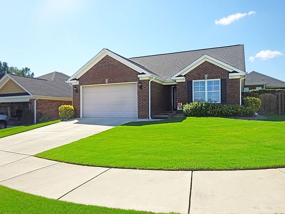 This all brick ranch style home is a beauty! Located on a large corner lot with privacy fence, one will find this attractive and wonderfully maintained one-owner home. Enter through the elegant glass door that opens to the contemporary interior with floor plan that offers a unique and comfortable setting with high ceilings, recessed lighting, 2" faux blinds, dining room and great room that open to the spacious kitchen with large kitchen bar, granite counters, custom maple stained cabinets, and stainless steel appliances. The owner's suite is extra large with tray ceiling, bathroom with full shower, dual sinks, walk-in closet, and separate water closet. Both bathrooms feature tiled floors with marbled vanities. Relax and enjoy the outside from your screened-in covered porch. An additional concrete pad is outside the porch for special barbecues. A great and desirable neighborhood in Evans for walking and within close proximity to parks, restaurants, shopping, & more. See now!